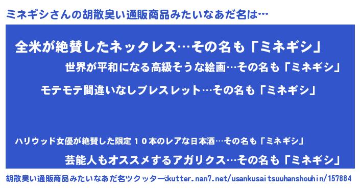 | 意味不明あだ名 | 『ペロリンミネギシ』『自称ミネギシ』 |