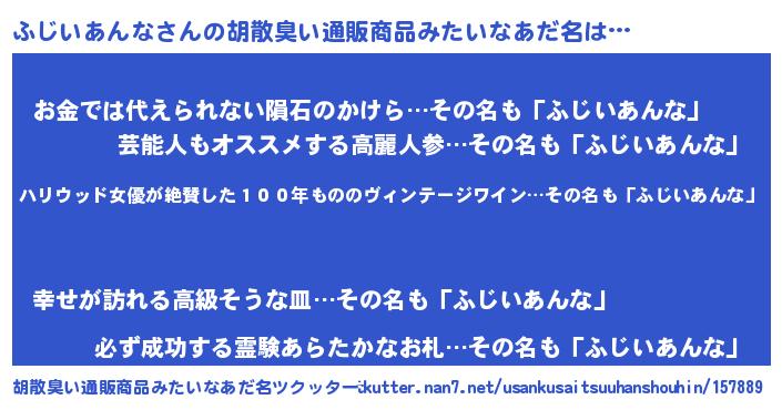 | ヒーロー風カッコイイあだ名 | 『仮面フジダー』『スーパーフジイアンナ』 |