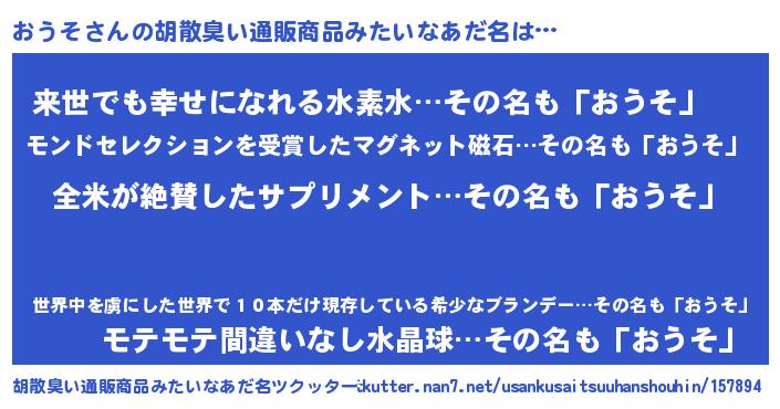 | 意味不明あだ名 | 『ヨモギ科おうそ属』『永久保存おうそ』 |