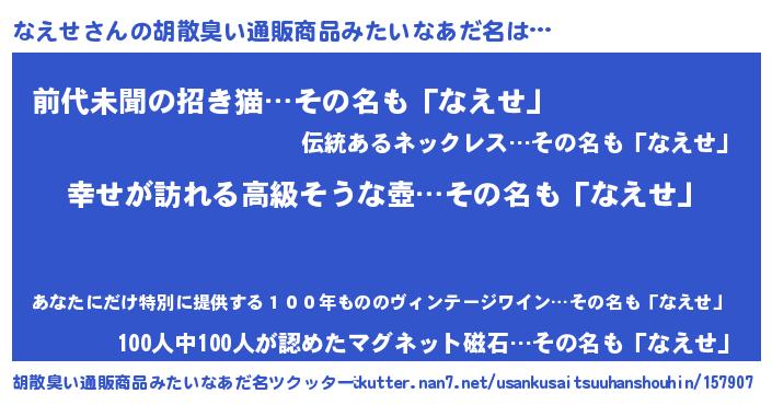 | 意味不明あだ名 | 『なえせフォーエバー』『永久保存なえせ』 |