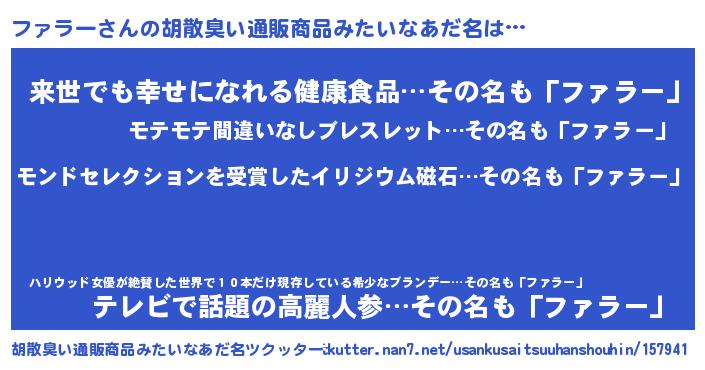| ヘコむあだ名 | 『ファラー(爆)』『ファにー』『豆乳』 |