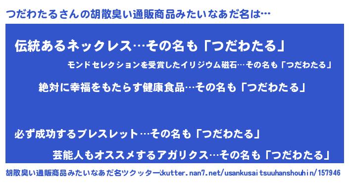 | 意味不明あだ名 | 『永久保存つだわたる』『自称つだわたる』 |