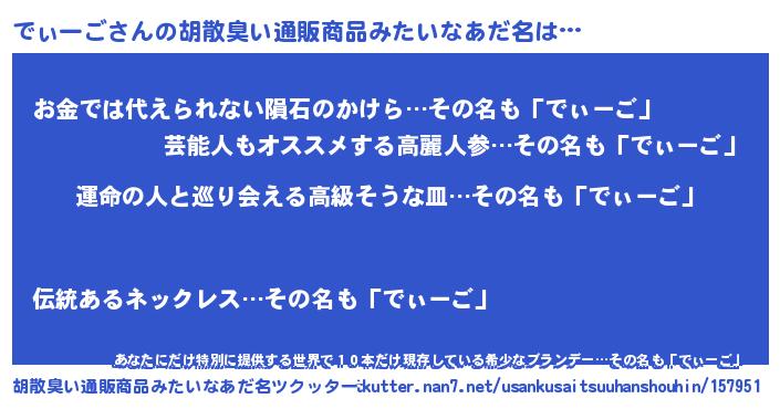 | 意味不明あだ名 | 『でぃーごフォーエバー』『自称でぃーご』 |