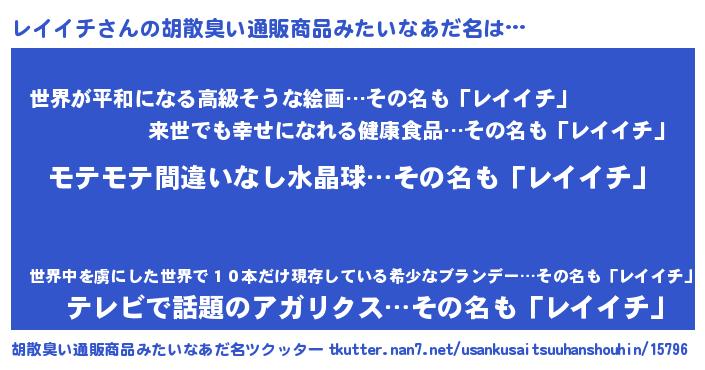 | 意味不明あだ名 | 『なめこ科レイイチ属』『自称レイイチ』 |