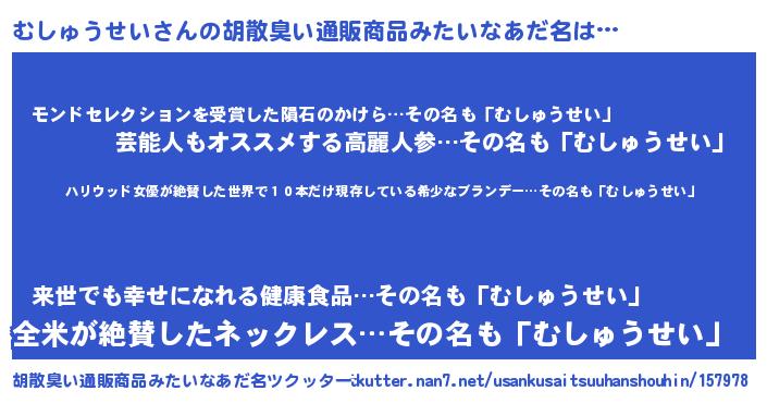 | 意味不明あだ名 | 『住所不定無職むしゅうせい(86歳)』 |