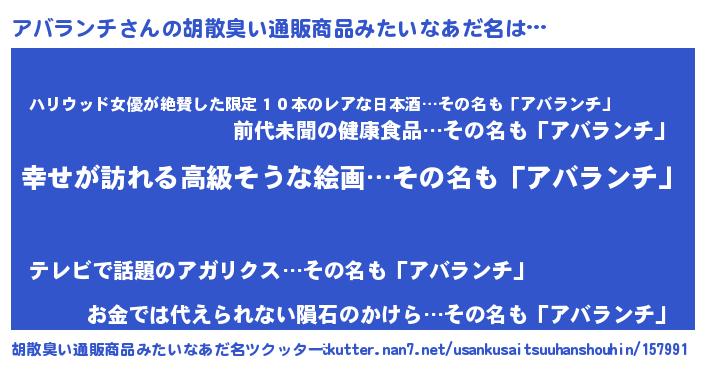 | 意味不明あだ名 | 『アバランチフォーエバー』 |