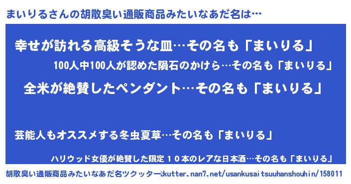 | ヘコむあだ名 | 『まいぷりん』『牛乳』『まいにー』 |