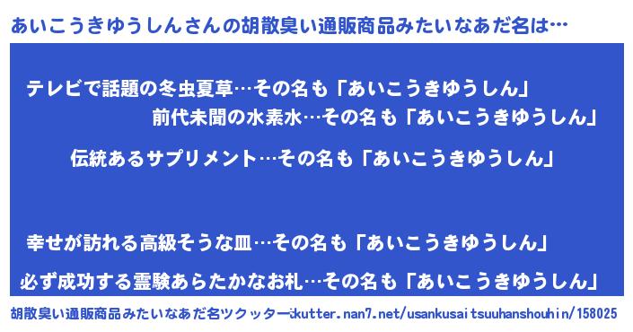 | 欧米人風あだ名 | 『ウサインあいこうきゆうしん』 |