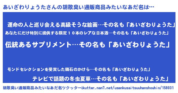 | 意味不明あだ名 | 『とにかく怪しいあいざわりょうた』 |