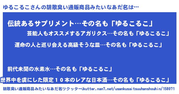 | 意味不明あだ名 | 『ゆるこるこフォーエバー』 |