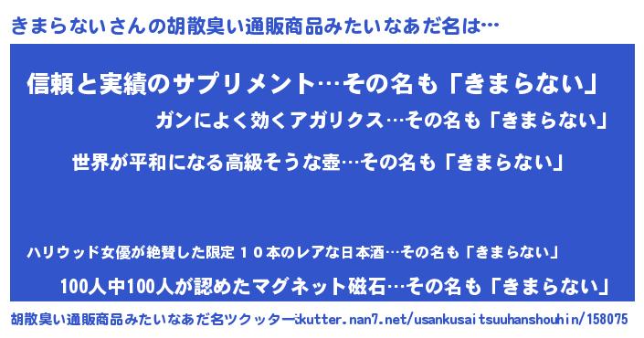 | 男性向けラノベタイトル風あだ名 | 『やはりきまらないの青春ラブコメはまちがっている 』 |