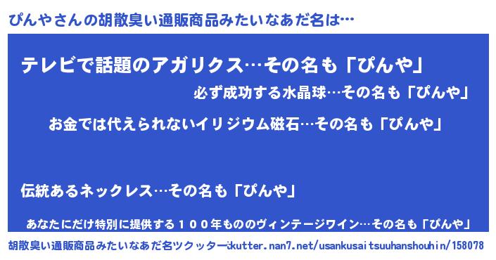 | 意味不明あだ名 | 『眠気覚ましガムぴんや味』『自称ぴんや』 |