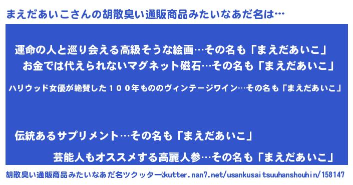 | ヒーロー風カッコイイあだ名 | 『仮面マエダー』『最強戦士マエダアイコ』 |