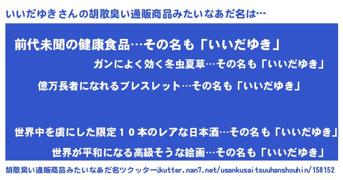 | ヘコむあだ名 | 『いいふぇ~』『いいだゆき(苦笑)』 |