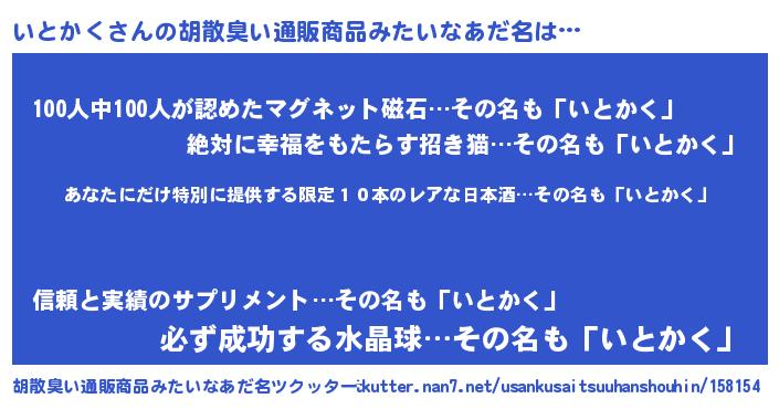 | ヒーロー風カッコイイあだ名 | 『仮面イトダー』『慈愛の使者いとかく』 |