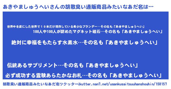 | 意味不明あだ名 | 『永久保存あきやましゅうへい』 |