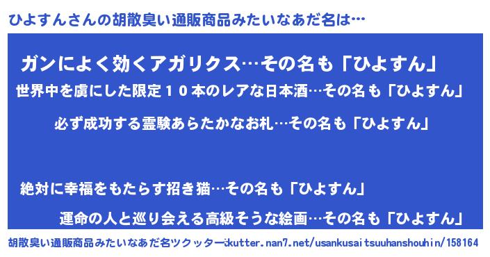 | 伝説のあだ名 | 『伝説のスナイパーひよすん』 |