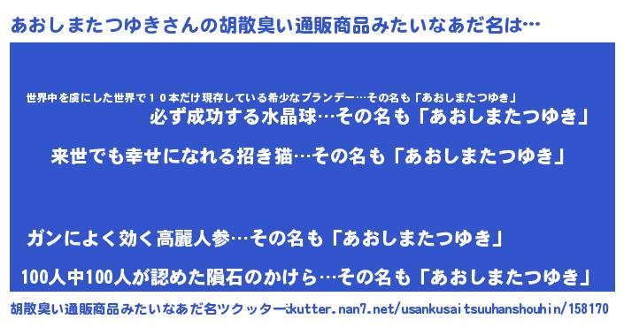 | ヘコむあだ名 | 『あおしまたつゆき(笑)』『あおっふぃ~』 |