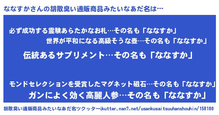 | 意味不明あだ名 | 『とにかく怪しいななすか』 |