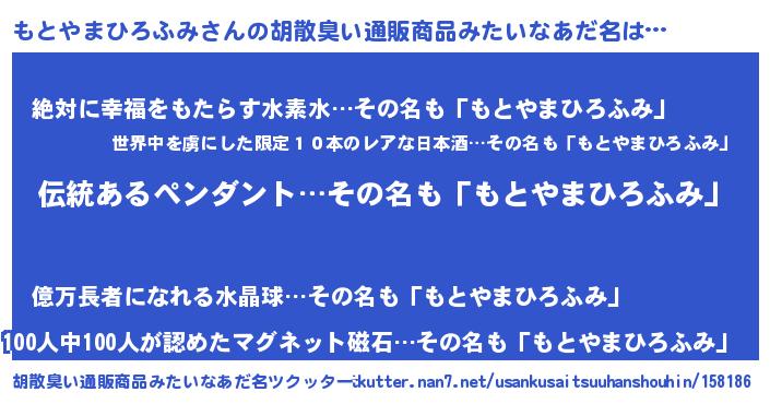 | ヘコむあだ名 | 『もとっちょ』『もとやまひろふみ(震え声)』 |
