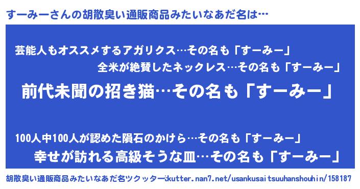 | 意味不明あだ名 | 『永久保存すーみー』『自称すーみー』 |