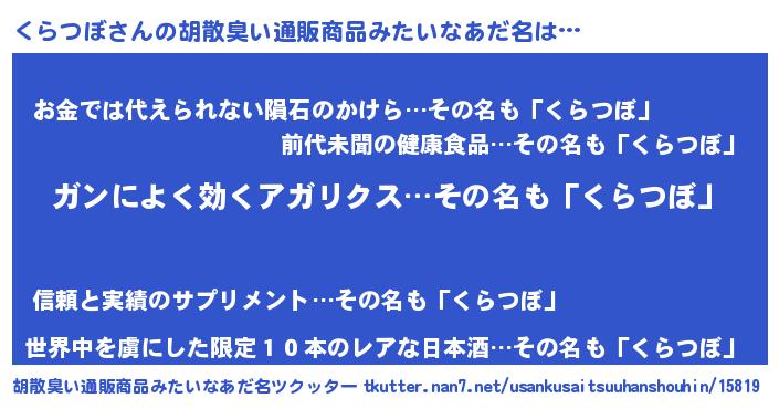 | 意味不明あだ名 | 『自称くらつぼ』『永久保存くらつぼ』 |
