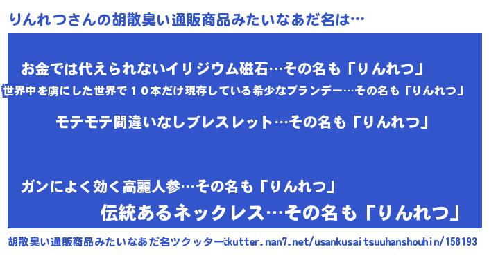 | 男性向けラノベタイトル風あだ名 | 『転生したらりんれつだった件』 |