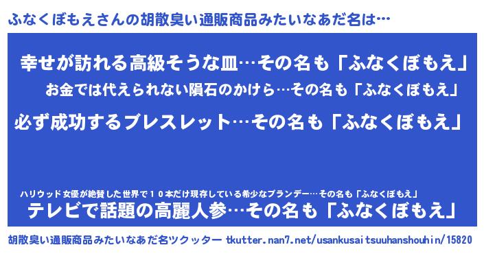 | ヒーロー風カッコイイあだ名 | 『スーパーフナクボモエ』『仮面フナダー』 |