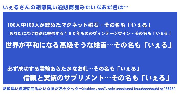 | 意味不明あだ名 | 『いぇるフォーエバー』 |