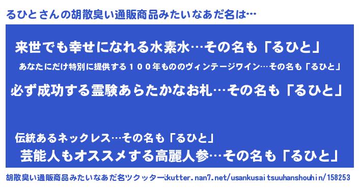 | ヘコむあだ名 | 『るひっふぃ~』『るひと(遠い目)』 |