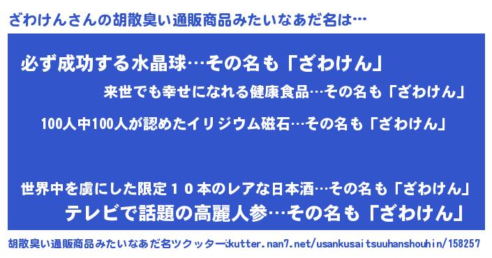| ヘコむあだ名 | 『ざわもー』『ざわけん(笑)』『豆乳』 |