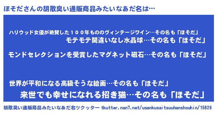 | ヘコむあだ名 | 『ほそだ(笑)』『ほそふぇ~』『豆乳』 |