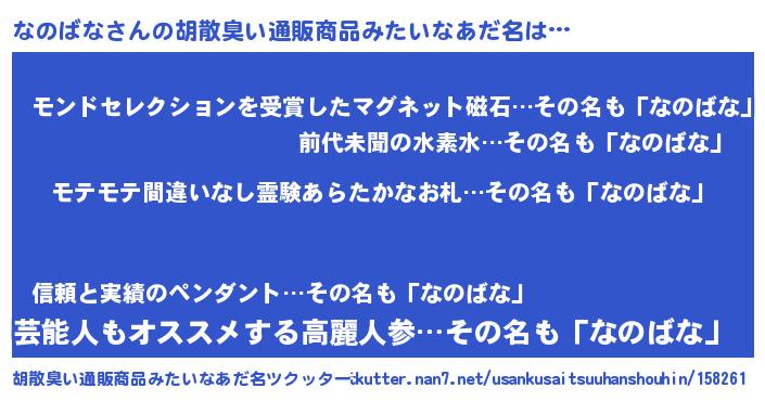 | ヘコむあだ名 | 『なのもー』『なのばな(小並感)』 |