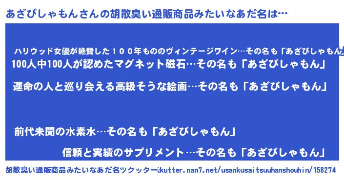 | 意味不明あだ名 | 『あざびしゃもんフォーエバー』 |