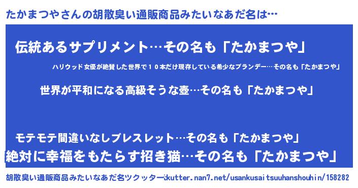 | 肩書あだ名 | 『たかまつや中尉』『たかまつや総理大臣』 |