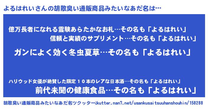 | 肩書あだ名 | 『よるはれい上級大将』『よるはれい閣下』 |