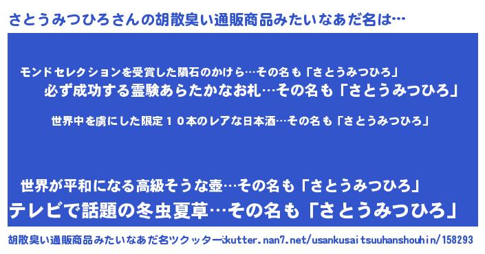 | 意味不明あだ名 | 『住所不定無職さとうみつひろ(47歳)』 |