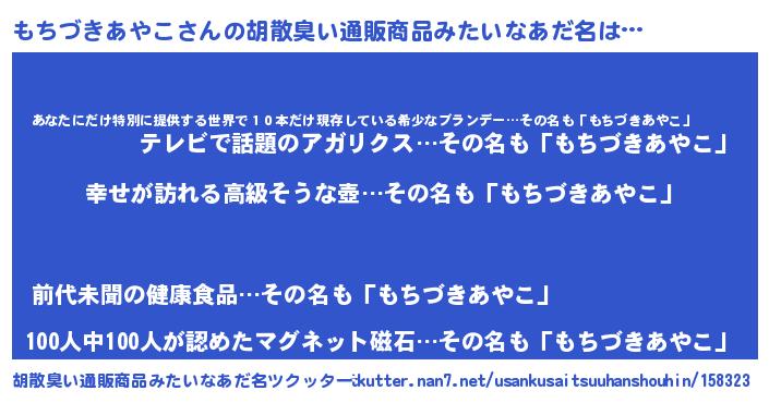 | 伝説のあだ名 | 『秘められし忍者もちづきあやこ』 |