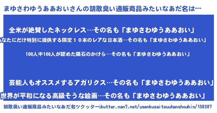 | ヒーロー風カッコイイあだ名 | 『正義の使者まゆさわゆうああおい』 |