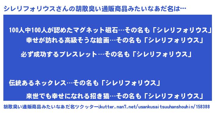 | ヒーロー風カッコイイあだ名 | 『スーパーシレリフォリウス』 |