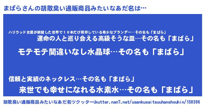 | ヘコむあだ名 | 『まばにゅー』『まばら(苦笑)』 |