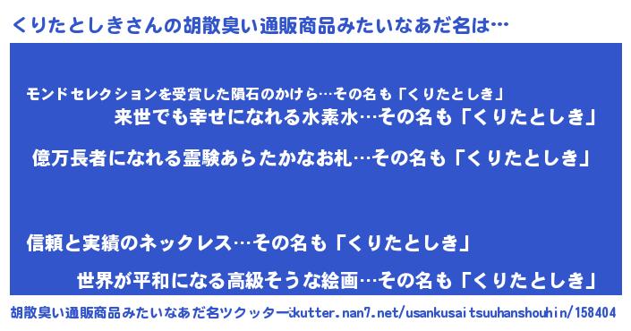 くりたとしきさんの胡散臭い通販商品みたいなあだ名をツクッター!