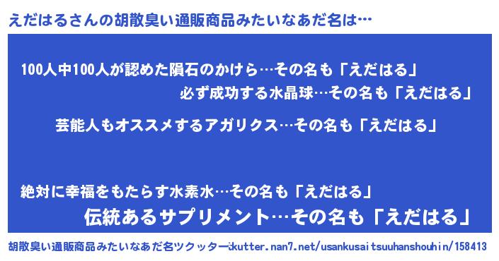 | 男性向けラノベタイトル風あだ名 | 『Re:えだはるから始める異世界生活』 |