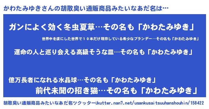 | ファンタジー風あだ名 | 『エターナルカワタミユキー』 |