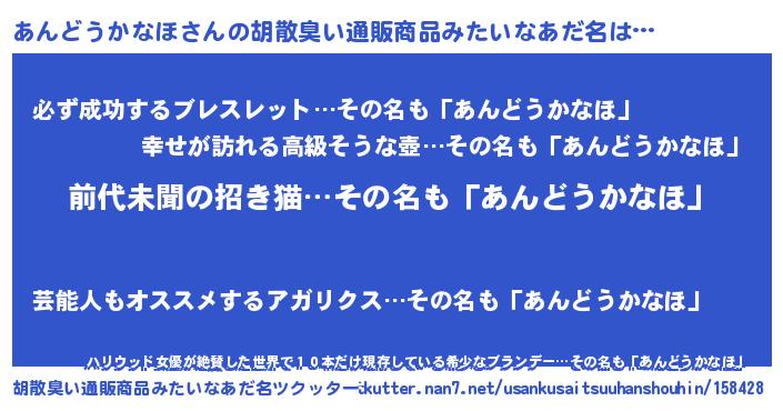 | 意味不明あだ名 | 『永久保存あんどうかなほ』 |