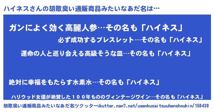 | 意味不明あだ名 | 『ハイネスフォーエバー』『自称ハイネス』 |