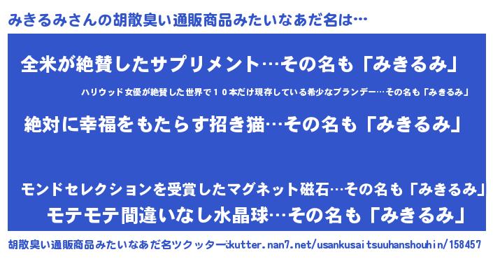 | 意味不明あだ名 | 『永久保存みきるみ』『ペロリンみきるみ』 |