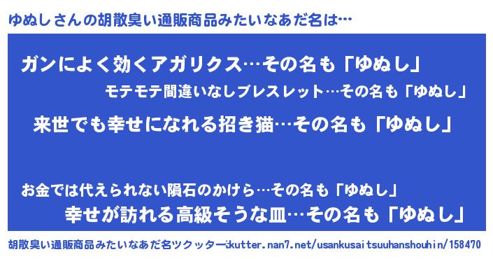 | ヘコむあだ名 | 『ゆぬし(小並感)』『つくし』 |
