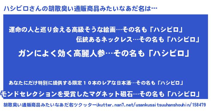 ハシビロさんの胡散臭い通販商品みたいなあだ名をツクッター!