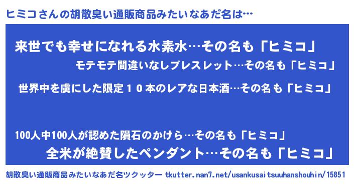 | ヘコむあだ名 | 『ヒミコ(苦笑)』『ヒミぷりん』 |